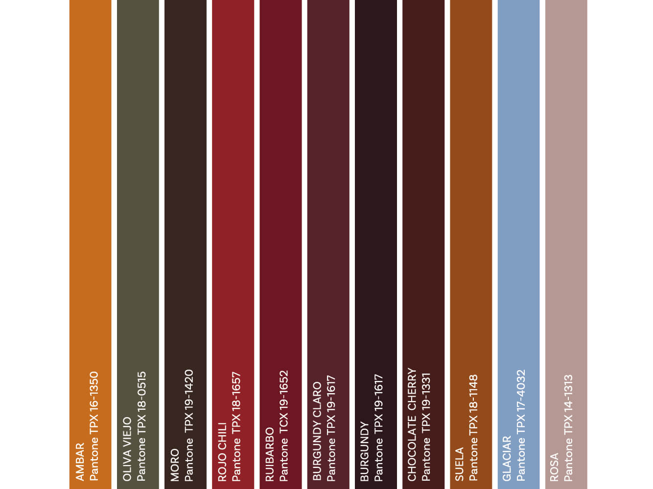 El rojo chili tiñe los básicos esta temporada, transformándose en un guinda, burgundy y en un chocolate rojizo, el chocolate cherry. Vemos también un oliva viejo bien definido y un moro que reemplaza al negro.