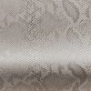 Cuero pulido, con folia metalizada y patrón reptil, grabado, abatanado.